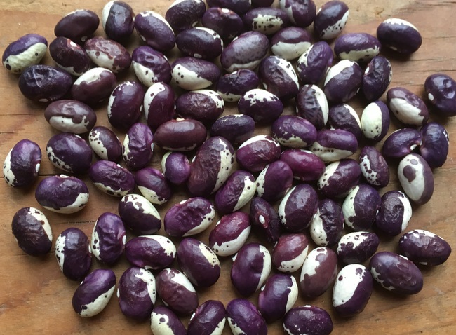 Frisch ausgekernt ist die Bohne halb lilafarben. Älteres Saatgut verliert die Farbe vollständig und wird braun.