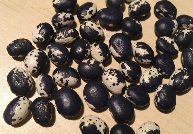 Hochwüchsige Stangentrockenbohne, mittelfrüh reifend, reich tragend, rundliches Korn.