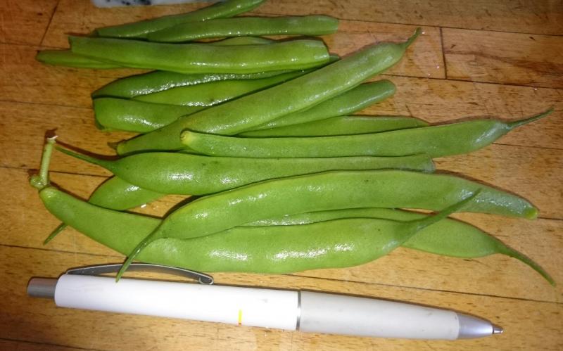 Die etwas älteren Hülsen haben eine kleine Neigung zu Fäden, die Jungen gar nicht. Die Hülsen sind flach und kein bisschen strohig.