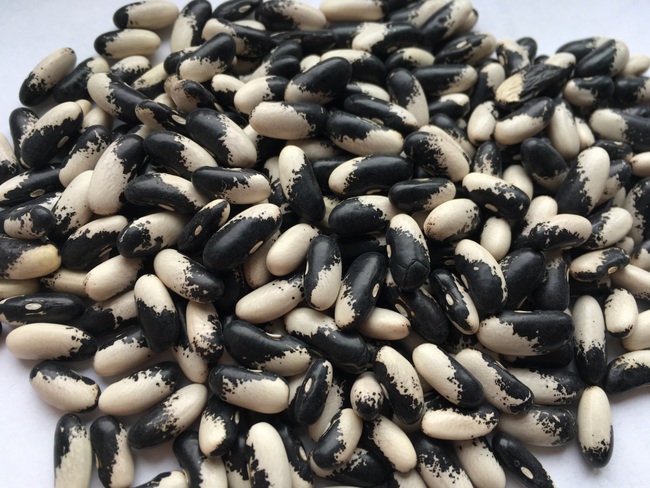 Schlanke unauffällig gefärbte Hülsen von bis zu 15 cm Länge. Sorte wohl primär wegen des schönen Korns interessant.
