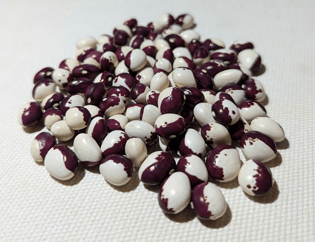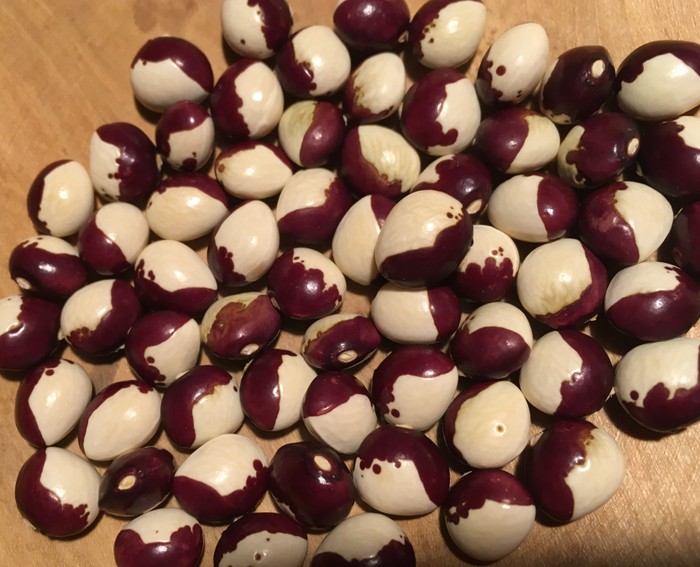 from Uprising Seeds: “This beautiful pole bean takes its name from the Canadian gardener who brought it from Russia to southern Manitoba, where it has been maintained since. Vigorous, fast-growing vines produce a prolific set of large, plump, stunning half cream/half burgundy beans. Said by some to be good in its fresh stage, we consider it primarily a dry bean. Very early and excellent as a baking bean. 90-100 days.”