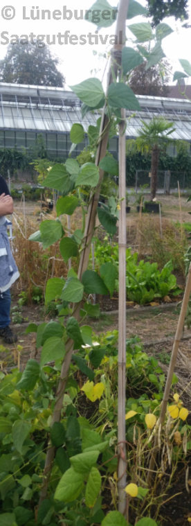 Mittelspäte Stockbohne, bis 1,70m hoch. Auch in Mischkultur mit Mais.