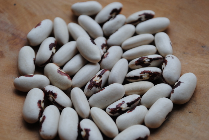 Ahrweiler Schnurrbartbohne -Buschbohne Herkunft Ahrweiler (Ahrtal/Eifel), lang-gelb-grünschotig, weißes Korn mit schwarzer Färbung