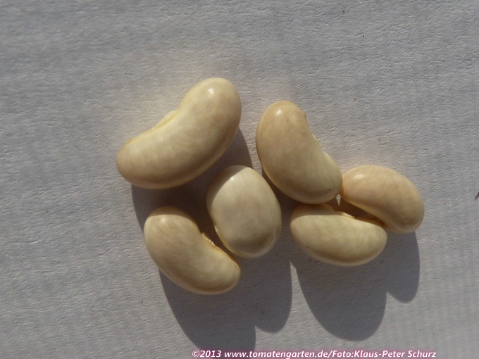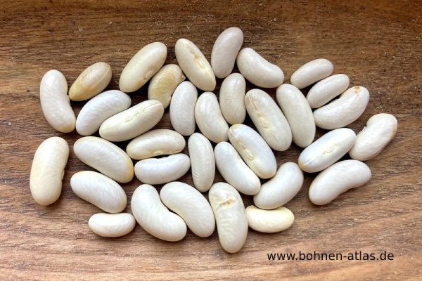 Fisole Eine Filetbohne mit langgestrecktem, meist nierenförmigem, weißem Korn (15x5 mm). Kräftiger Wuchs.