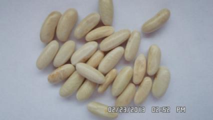Eine Filetbohne mit ganz dünnen, zarten Hülsen und reiskorn ähnlichen weißen Samen. Trotz kleiner Hülsen sehr ertragreich. Gut geeignet zum Einlegen. Fadenloser Massenträger.