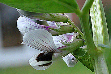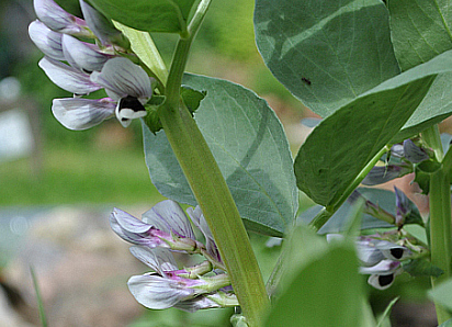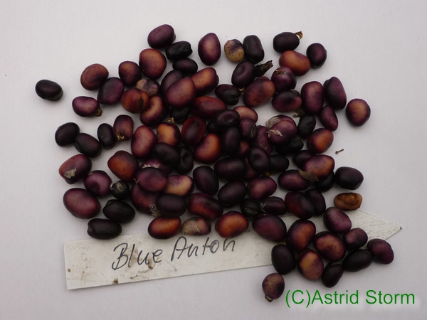Puffbohne Blue Anton, Herkunft SESAM Schweden, Korn ca. 10mm, Blüte weiß-schwarz (Astrid Storm)