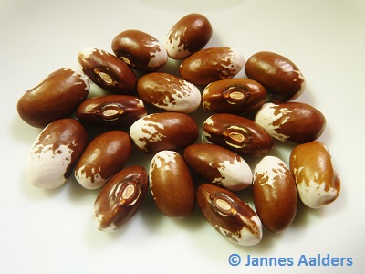 Reiserbohne, Trockenbohne, 110 Tage bis die ersten Hülsen trocken sind. Sehr reiche Ernte. 50cm hohe Pflanzen wachsen am Boden entlang und richten sich auch bei Reife nicht aut. Ich hatte diese Bohne ursprünglich in den 80er Jahren des letzten Jahrhunderts von Kent Whealey vom Seed Savers Exchange erhalten mit dem Originalnamen Bird Egg. In den 80er Jahren hatte ich dann Saatgut dieser Bohne vielfach an andere Mitglieder des Seed Savers Exchange weitergegeben. Später dann in 2013 habe ich für mich selber wieder Samen dieser Bohne von SSE bestellt und dabei festgestellt, dass sich inzwischen der Name zu Bird Egg #2 geändert hatte.