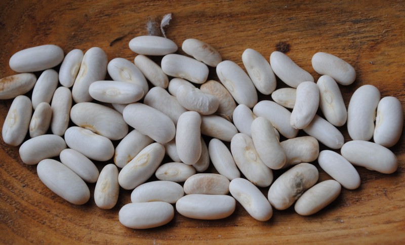 Pflanzenhöhe 40 cm, weiße Blüten, 8 Hülsen pro Fruchtstand, 7 Samen pro Hülse. Hülse 13 cm lang, 1,5 cm breit, grün, gerade, mit rundem Querschnitt, ohne Fäden.