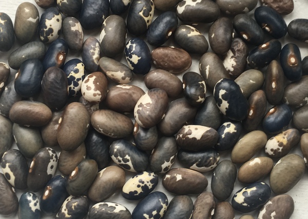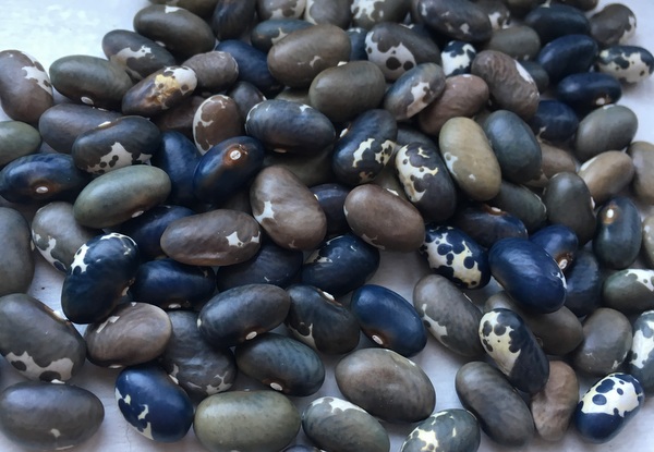 Wachsbohne, gesund und stark rankend, mit üppigem Blattbehang. Die gelben Fisolen sind lang, breit und flach. Mit zunehmender Reife bekommen die Fisolen zarte weinrote Sprenkel. Sehr guter Geschmack,. Auch die älteren Fisolen bleiben zart und haben keine Fäden. Abgesehen von den Kernen konnte ich keinen Unterschied zur Barladeana (nur schwarz-weiß gescheckte Kerne) feststellen.