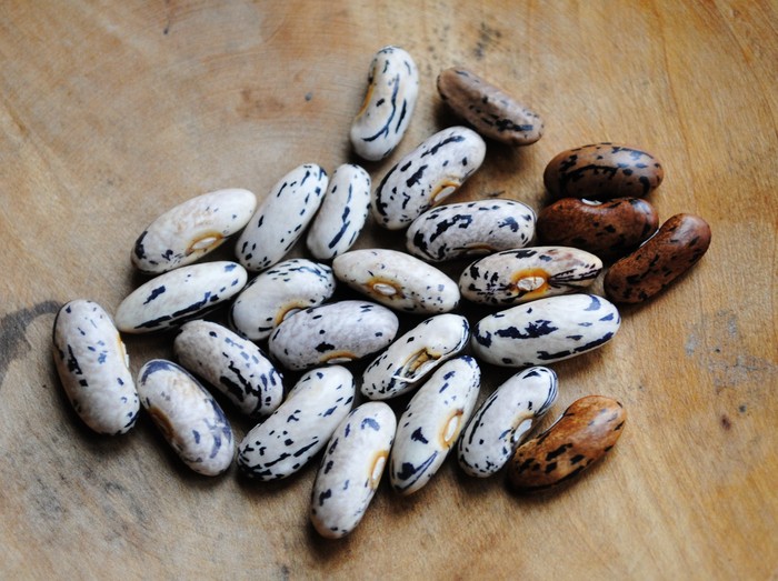 Alte schweizer Sorte mit dünnen, nierenförmigen Samen, die gleich Wachtelbohnen gefärbt sind. Verwendung wohl eher als Fisole? Von Berner Landfrauen gepflegte Sorte.