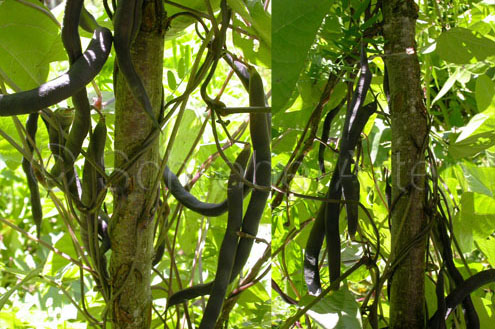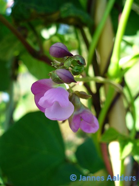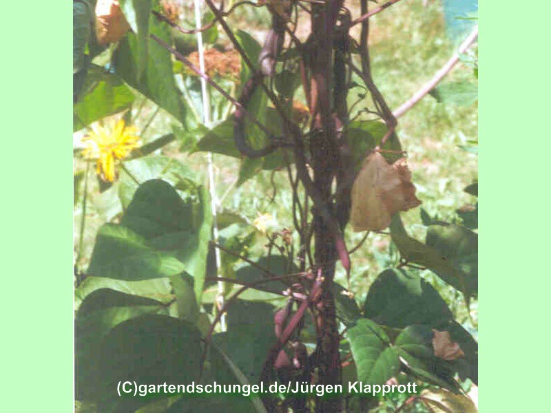 Während der Blüten- und Hülsenbildung den Boden gleichmäßig feucht halten, um das Abfallen der Blüten zu verhindern. Klettert bis zu 3 m hoch.