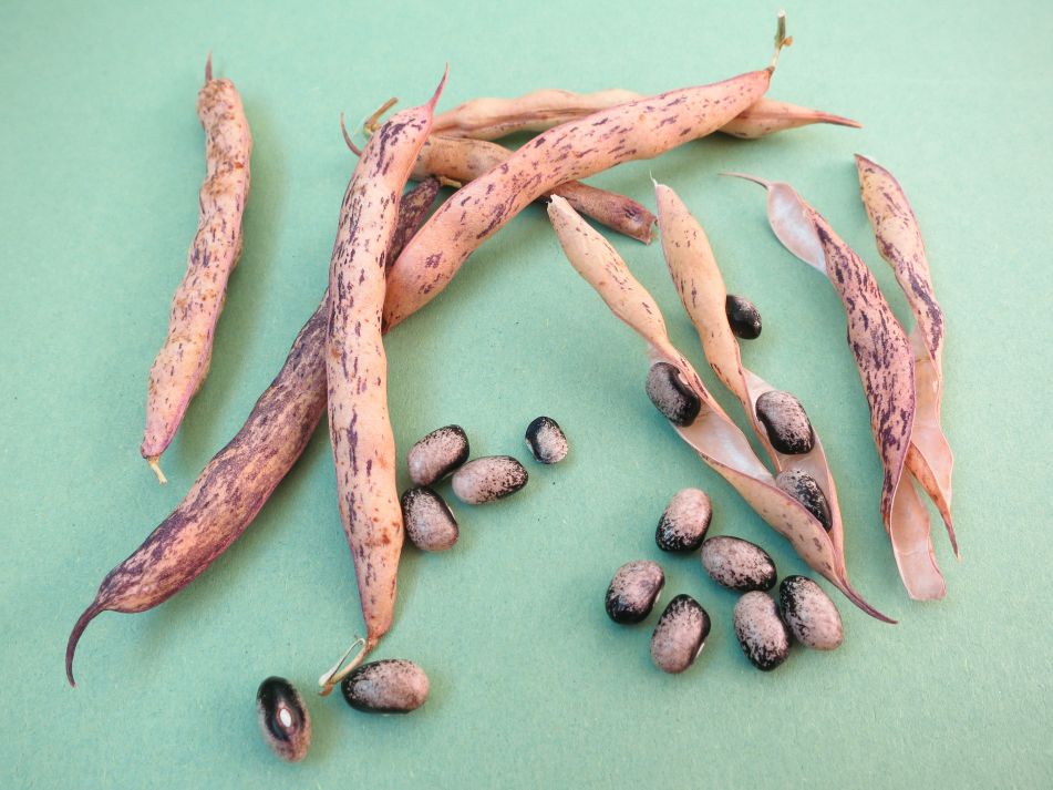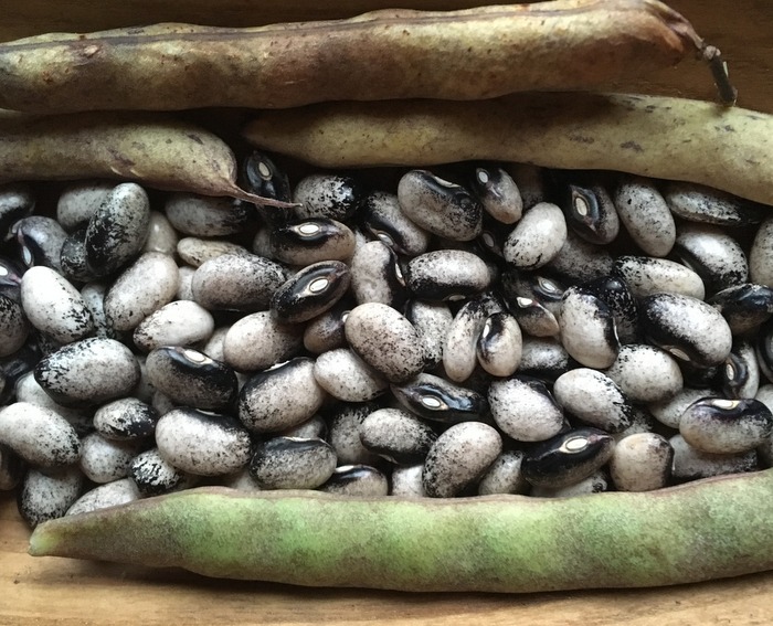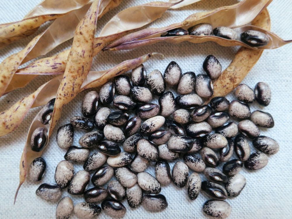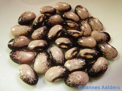 Alte Bohnensorte aus den USA, rankt ca. 1 Meter hoch, ähnlich wie die Sorte Mayflower, allerdings etwas größere Kerne und schwarz-weiße Zeichnung. Sehr robust und wenig krankheitsanfällig.