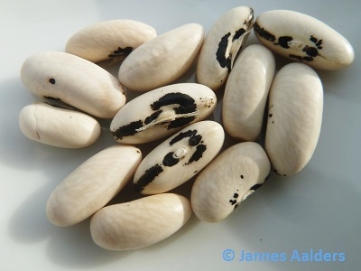 Fisole, Brechbohne Eine Fisole mit gelben Hülsen. Die kleineren, dünnen, etwas nierenförmigen Samen sind etwa 13 x 5 mm groß, von weißer Farbe und tragen am Nabel eine dunkle Figur in Form einer fliegen-den Taube - ähnlich 'Wachs Beste von Allen', doch sind bei 'Brittle Wax' die Samen kleiner. Verwendung dieser Brechbohne als Gemüse und als Bohnensalat. Von der Firma W. Atlee Burpee & Co., Warminster, PA (USA) über L. Juffa erhalten