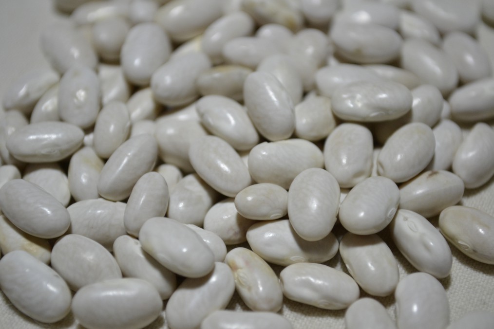 "From Devin Shropshire of Winston-Salem, NC, this white-seeded half runner is an excellent climbing bean. Many, but not all, have blue tips. From the Cana, Virginia area originally."