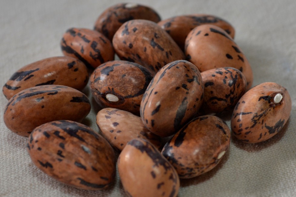 From Le Jardin du Gourmet: "White and red marbled bush bean. Heavy producer."