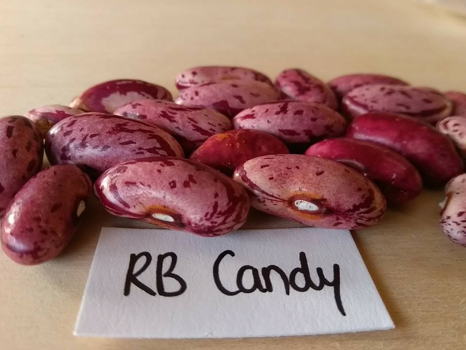 An original bean discovered in Russ Crow's Woodstock, Illinois in 1982. Russ found the bean growing amongst it's seed mother Big Light Red Trout. Named Candy as it reminded him of a peppermint Candy stick.