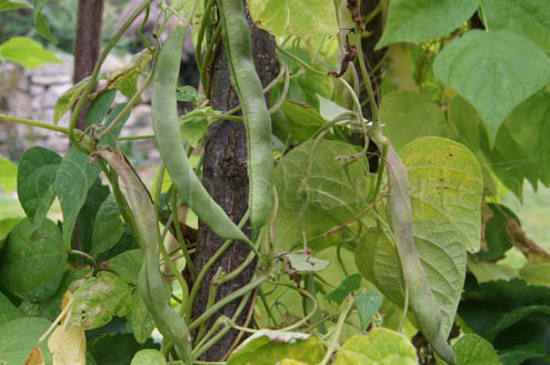 Gisela: gesund, setzt tief unten an, fädig, Wuchs schwach, 1. reife Trockenbohne 2017