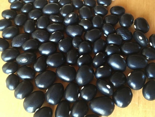 Griechische Buschbohne mit breiten Hülsen. Die runden Kerne haben eine weiße Grundfarbe mit schwarzen Flecken um die Narbe herum. Sehr dekorativ. Ähnelt in allem 'Orca'/'Yin Yang'.