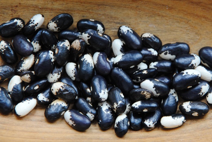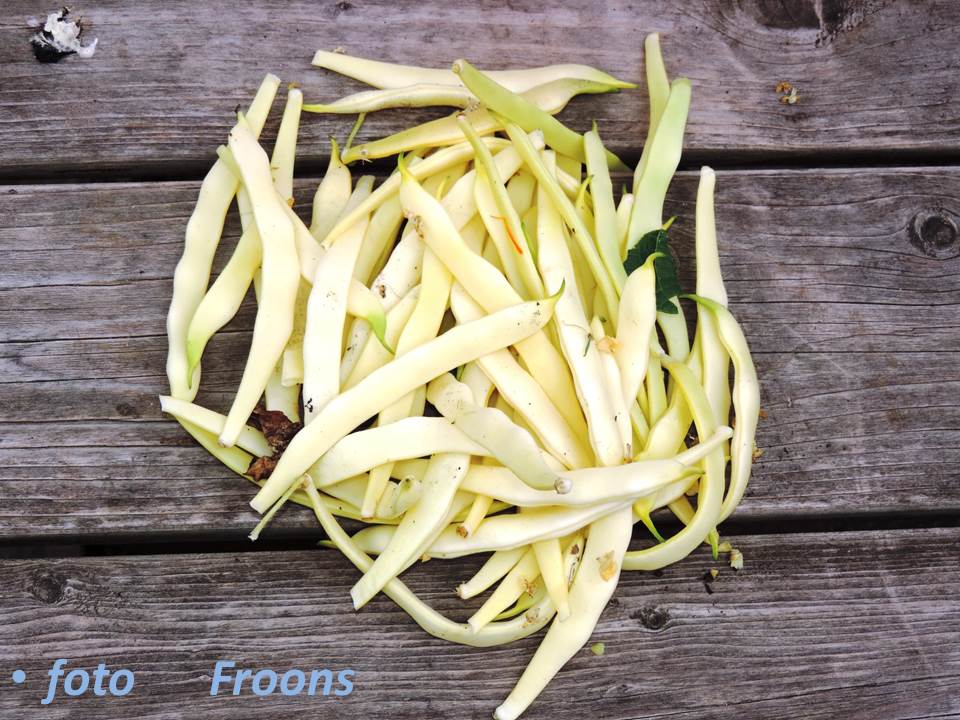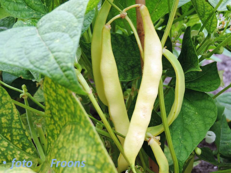 Gelbe, lange Fisole, jung auch nutzbar, später als Trockenbohne.