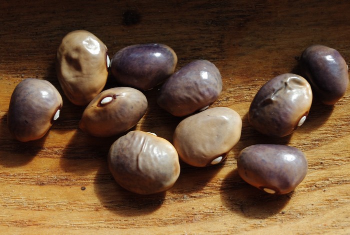 Die Pflanzen werden bis zu 2,50 Meter hoch und produzieren Samen in grün, braun und violett. Sie sollen den Geschmack von Kastanien haben. Jung auch als grüne Bohne
