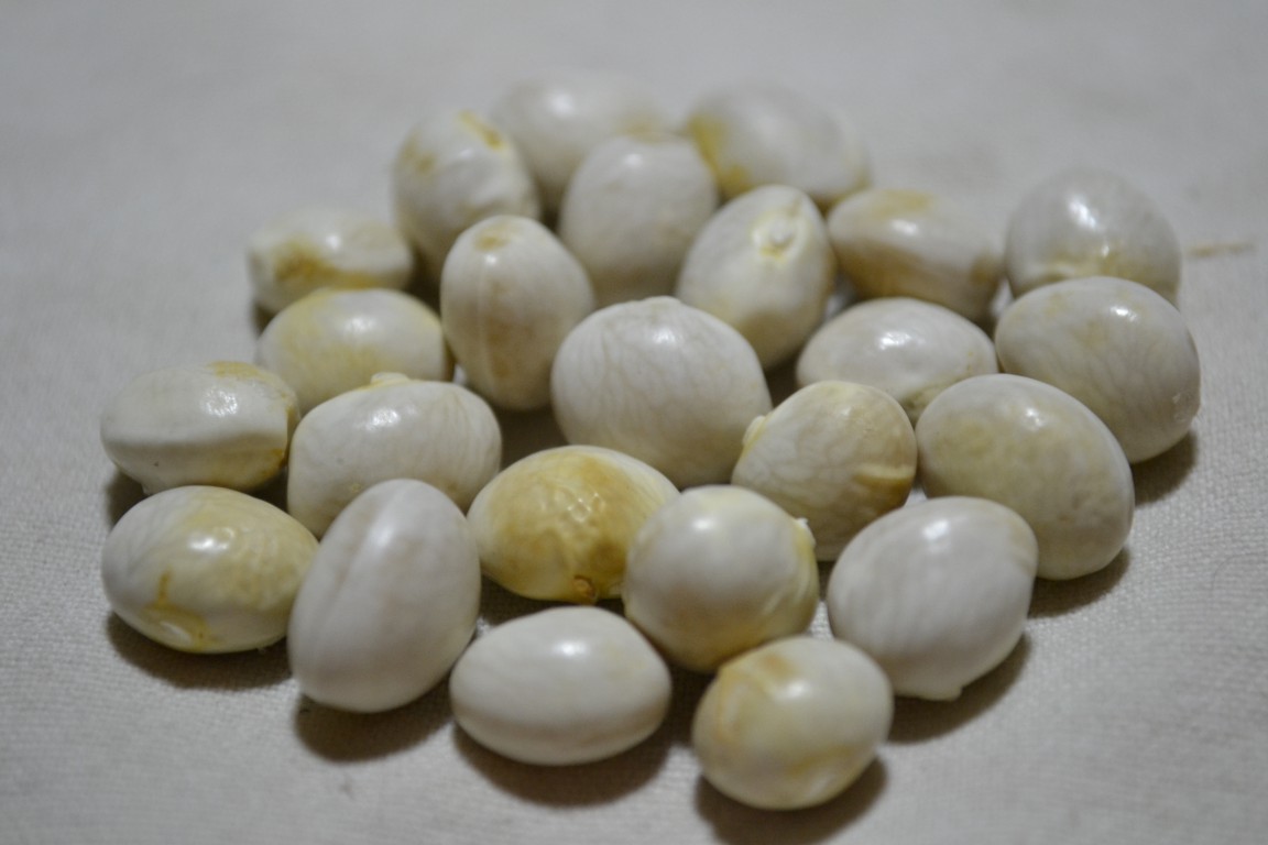 "This rare heirloom is a landrace originating near Limburg, Netherlands, but has been grown by the Pennsylvania Dutch under the name Gnochebuhn (Knuckle Bean) since the early 1800s. Its colorful name refers to the fact that the dry beans resemble knuckle bones, but unlike bones, they cook down into the most wonderful, creamy white bean soups! They are also perfect for cassoulets and casseroles. The plants produce vigorous 16 to 18 inch bushes with prolific yields. Dry bean harvest in roughly 90 days although the green shelly beans can be harvested all summer."