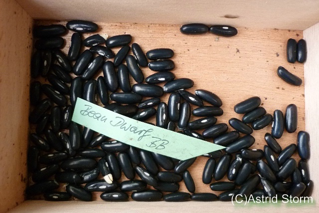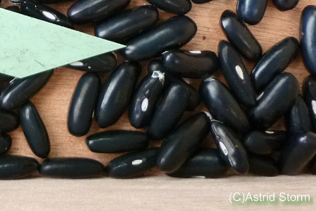 Buschbohne Bean Dwarf, niedrigwachsende Buschbohne mit langen , früh fädigen Hülsen und schwarzem Korn ca. 10mm (Astrid Storm)