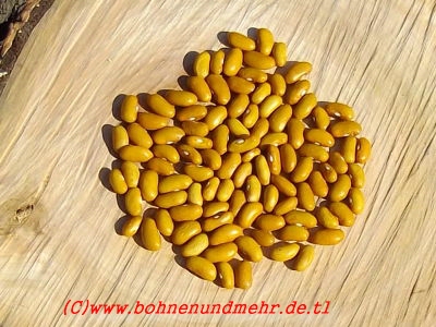 (Fisole, evtl. auch als Körnerbohne verwendbar) Typ, der vermutlich früher unter Glas angebaut wurde, wenn es draußen noch kalt war (Name). Schönes, glänzend ocker-braunes Korn. Verwendung insbesondere der zarten Hülsen, doch auch gut als Trockenbohne geeignet. Säen Sie im April ins Frühbeet oder ab Ende Mai ins Freie. Sicher im Ertrag und umkompliziert im Anbau. Von D. Landsmann