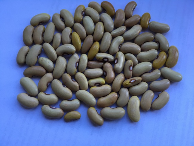 Je Pflanze 5 Hülsen mit je 5-7 Samen. Hülsen 15-18cm lang, etwa 1cm breit
