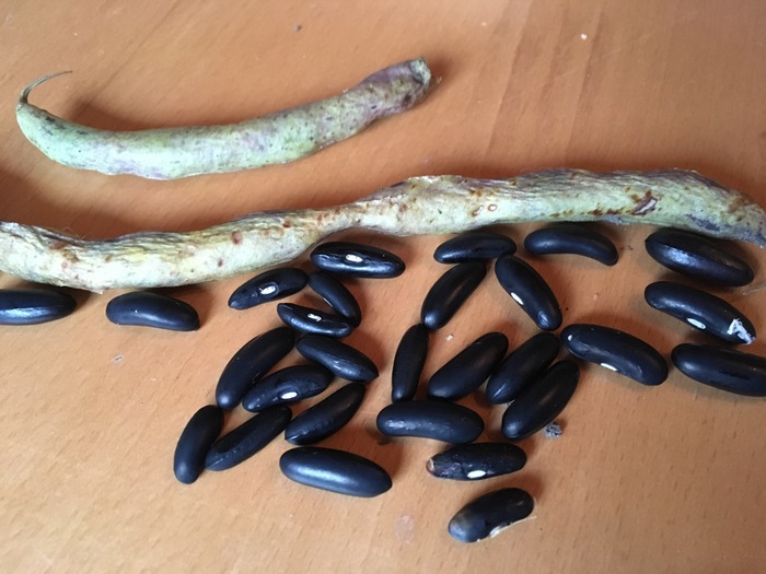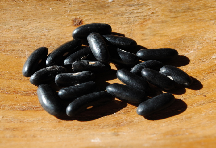Eine sehr ertragrreiche fadenlose Bohne, die auffällig lange Hülsen entwickelt. Sie kann als grüne Bohne gegessen werden und gleichzeitig entwickelt sie große schwarze Körner.