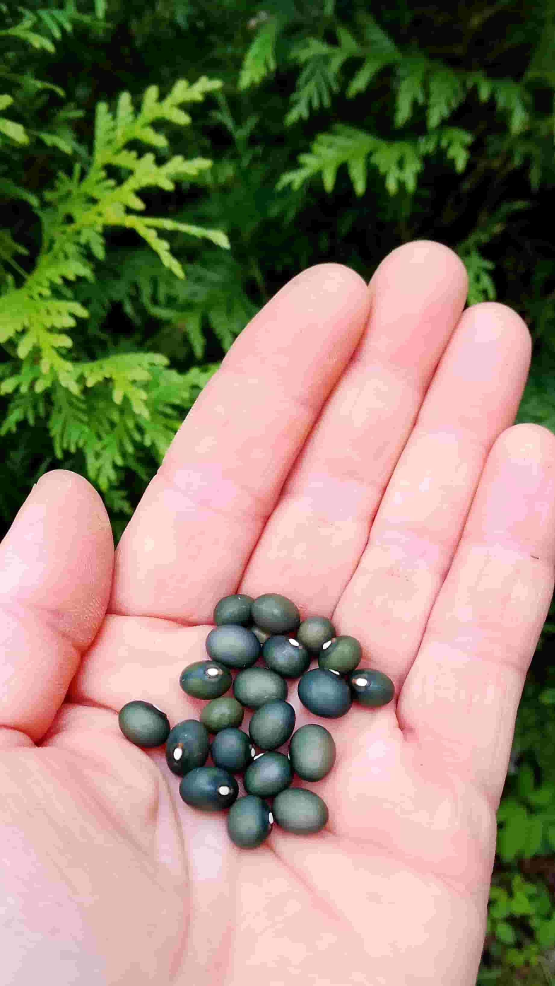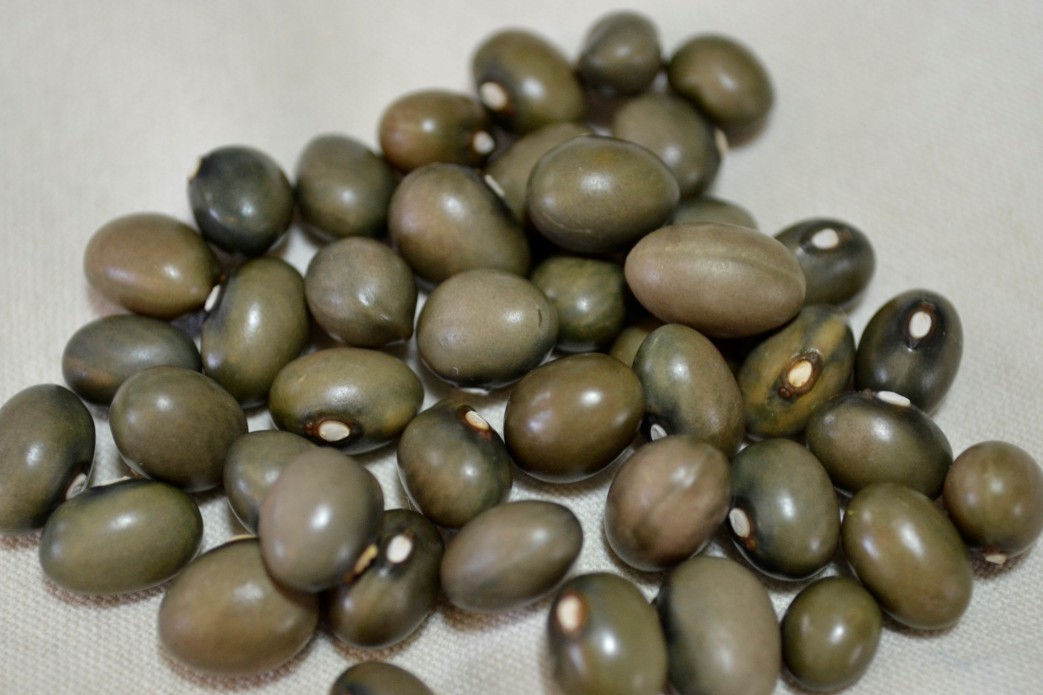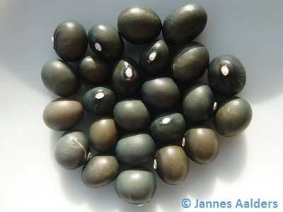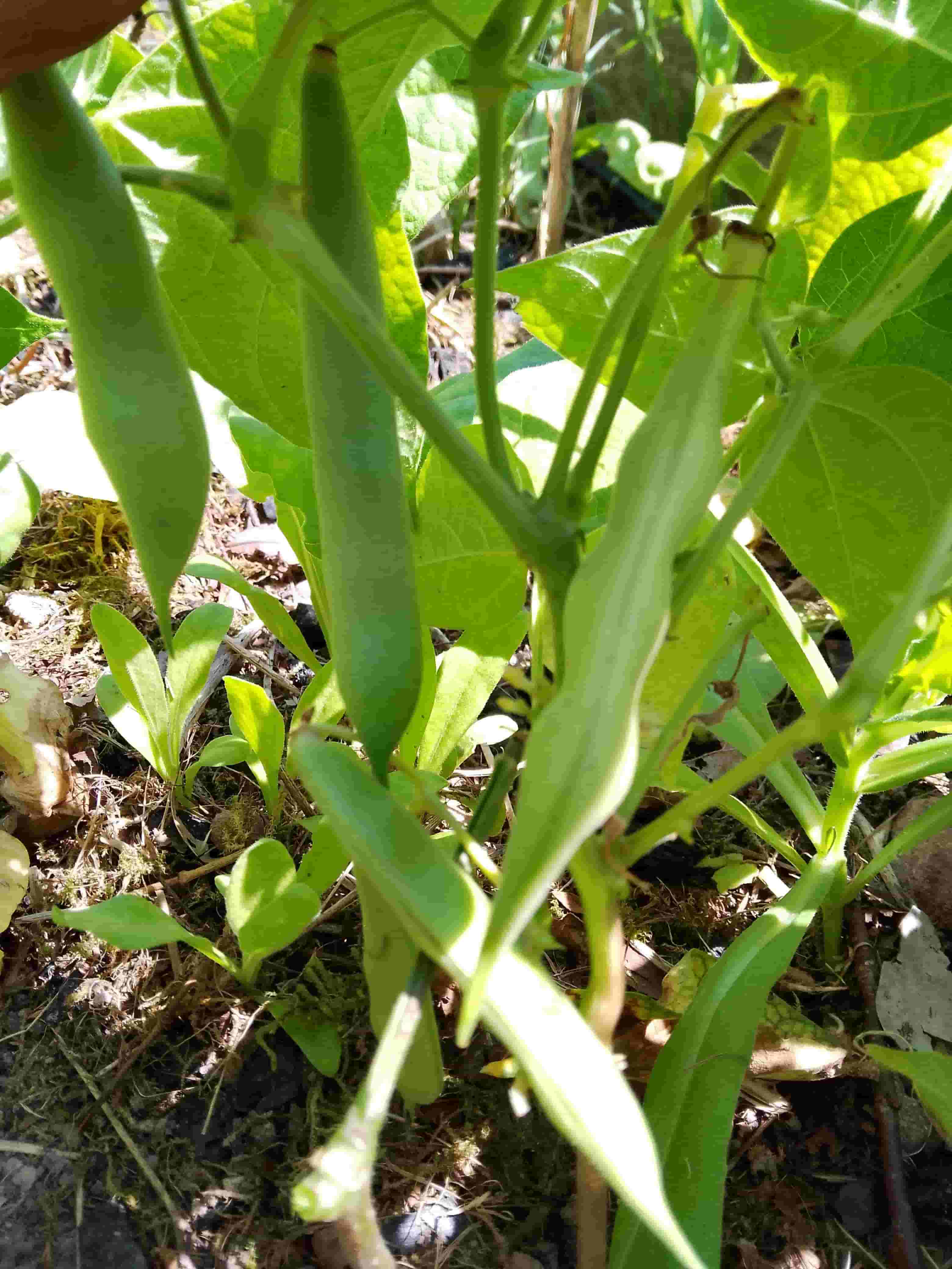 Hochwachsend, ca. 2 m. Kleine kurze Hülsen mit hübschen dunkelgrünen Kernen.