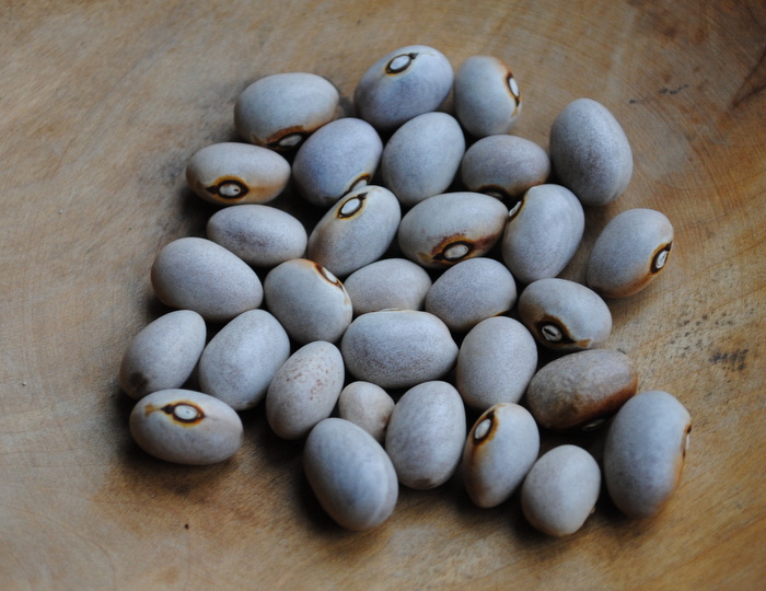 Körnerbohne Ein ungewöhnlich gefärbtes, helles, rundliches Korn (11 x 7 mm) mit einem braunen Ring um das Auge. Interessant is die helle graubeige bis graurosa Grundfarbe, die so aussieht als sie sie mit Gra-phitstaub bepudert worden. Diese Form spaltet offenbar - bei identischem Korn - in eine kletternde und eine buschige Form auf. Daher finden Sie die schöne 'Graurosa aus Budapest' auch unter den Stangenbohnen unter der Bestellnummr K 623 (s. dort). Bitte vergleichen Sie beide Wuchsformen. Die buschige Form wurde von Harmut Rick vermehrt.