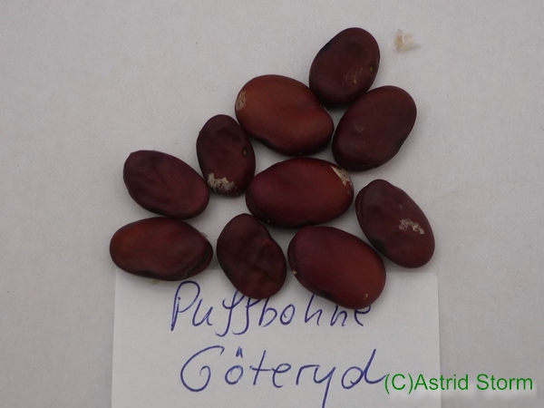 Puffbohne Göteryd, Lokalsorte von Südwest-Smaland/Schweden, Korn dunkelrot 15mm (Astrid Storm)