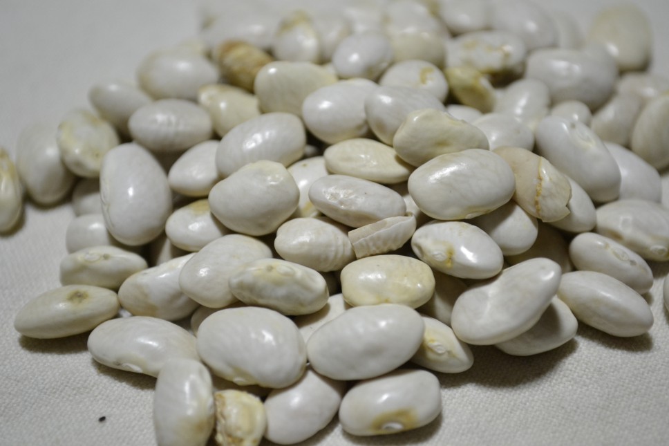 "75 days - Heirloom pole snap bean, white seeds. Grows well planted with corn and using the cornstalks as a pole to climb."