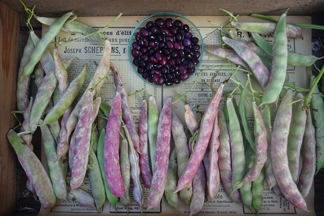 "90 days (to dry stage) - Vigorous climber, small, very round, purple seed. Heirloom from Magoffin County, Kentucky."
