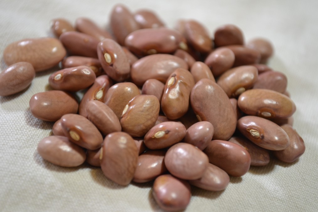 "High-yielding, medium-large pink beans collected from dry-farm fields near Hotevilla in northeast Arizona. Early-maturing, good as a green bean. Produces white flowers. Pole bean."
