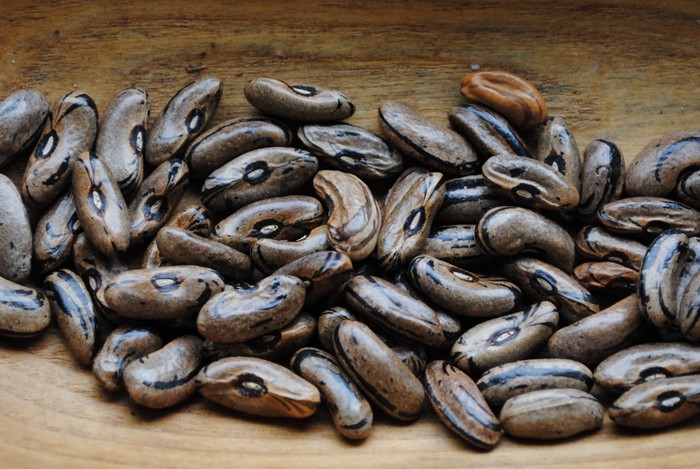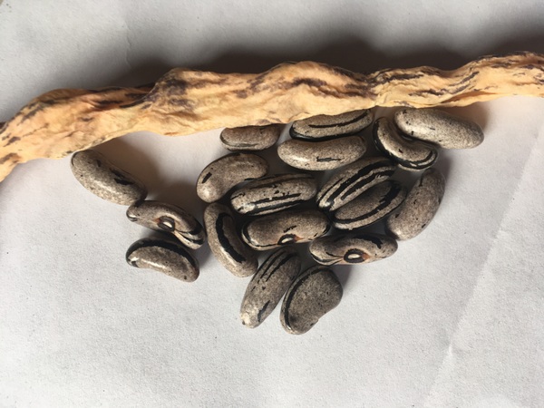 Obwohl die Samen ein wenig wie Tennessee Wonder aussehen, ist es auf jeden Fall eine andere Sorte. Viel größere Schoten. Größere Fisolen, kleine Samen und keine Markierungen auf den Fisolen.