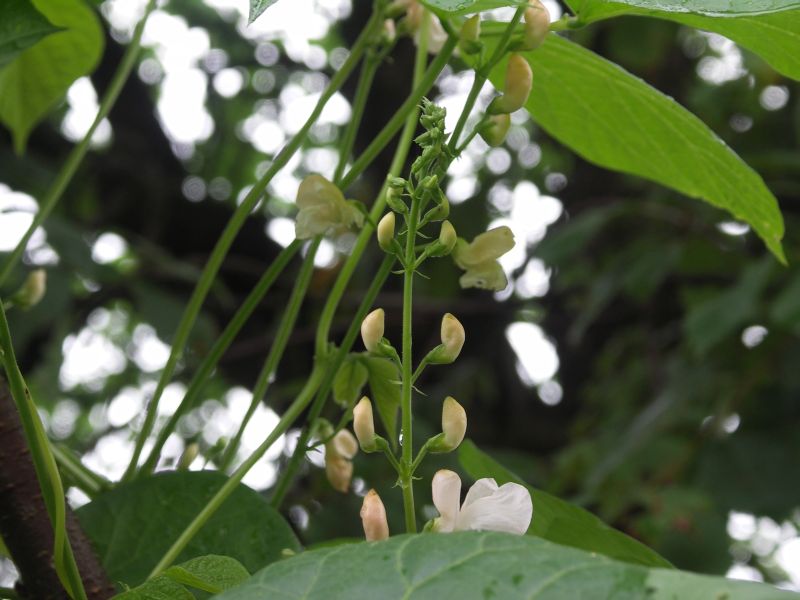 Das besondere an dieser Bohne ist die Helle Färbung und die zartrosa/apricotfarbenen Blüten.