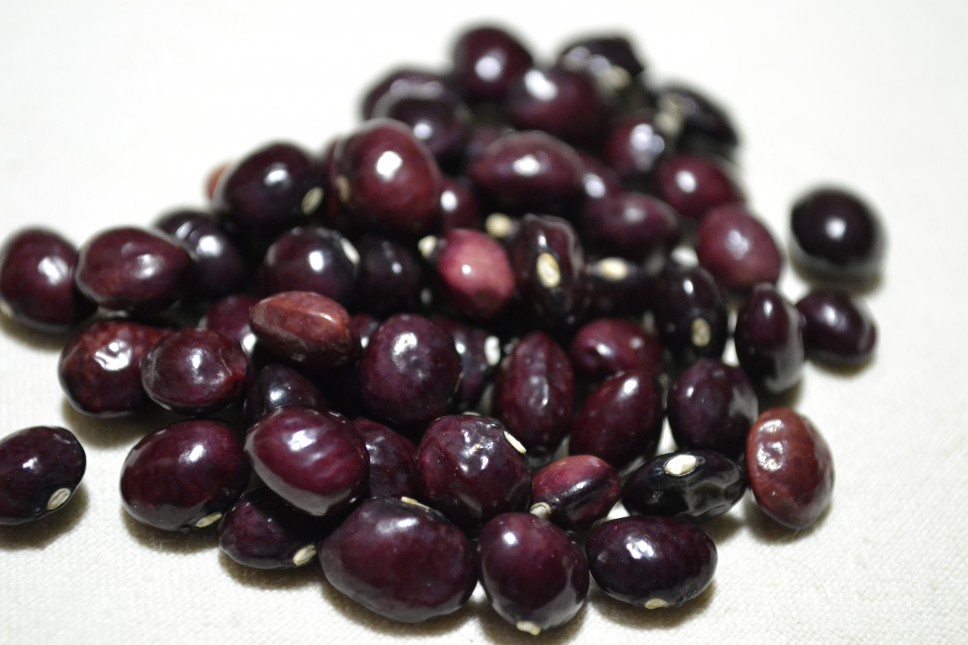 "Grown by the Jennings family in Campbell Co., Tennessee for many years. This is an unusual variety with brilliant burgundy seeds and light violet flowers. Can be eaten fresh as a snap bean or the seeds can be dried for winter storage."