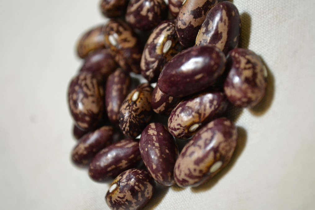 "The Jesse Fisk bean is the namesake of an original New England settler. In the 1740's Jesse Fisk emigrated from England to Charleston New Hampshire. Direct seeded in early June, mulched and left it to its own devices, this variety rewarded us in the fall with an abundance of stout pods. They shell easily yielding 5-6 beautiful, fat, slightly rounded oblong beans apiece. Welcome additions to our winter pantry, we enjoy Jesse Fisk beans in chili, soups and as slow-cooked beans. A new "must-grow" variety for us."