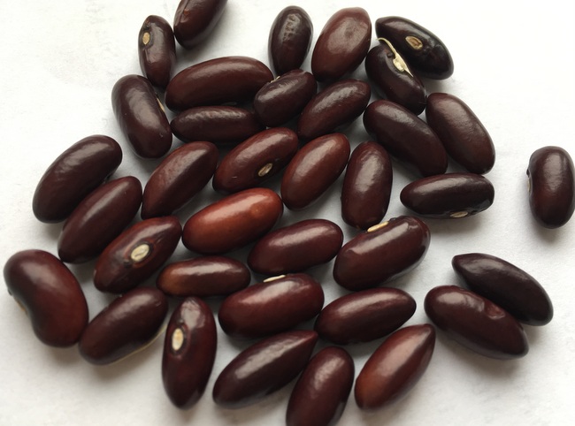 Toll gefärbte, tief weinrote Kidneybohne mit relativ kleinen Samen.