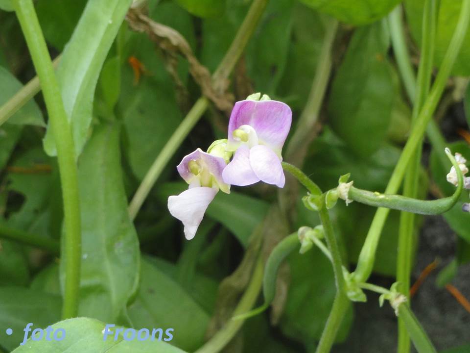 Aussaat 28.04., am 11.05. gekeimt, am 11.06. erste Blüte. Blüte schwach purpur. Stängel grün mit violetten Streifen. Hälfte der grünen Hülsen gerade, die andere Hälfte gekrümmt, mit konkaver Bauchseite und rundem Querschnitt, gelegentliche Einschnürungen. 10 cm lang und 0,8 cm breit. Leicht abgestumpftes Hülsenende mit über 1 cm langem, randständigem Zahn, der schwach aufwärts zum Rücken gekrümmt ist. Samen mittelgroß, einfarbig rot, länglich und mit kreisrundem Querschnitt, konvexem Bauch und konvexem Rücken.