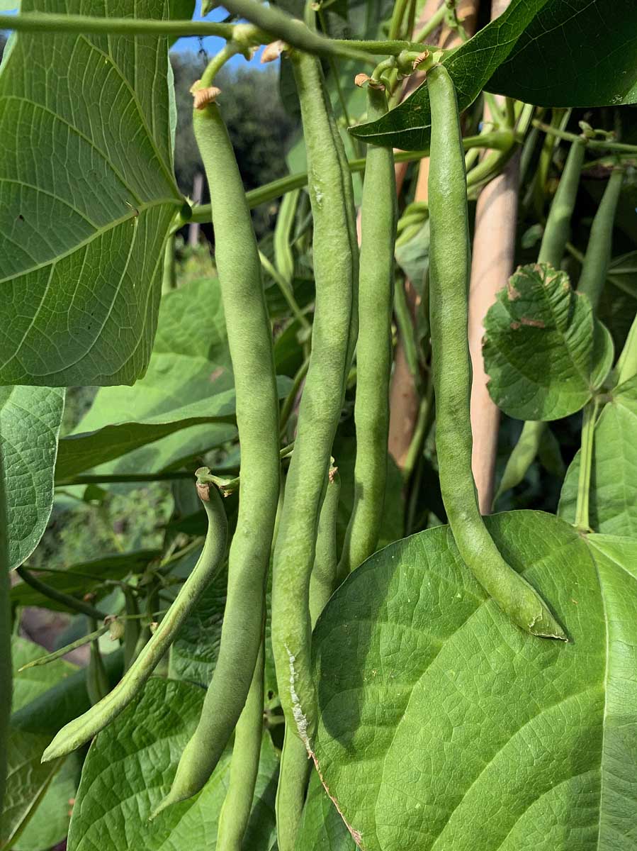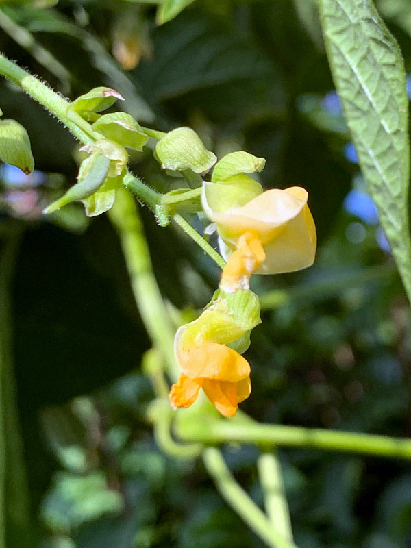 Die Julifreude macht ihrem Namen alle Ehre. Ausgesät am 11. Mai 2021 (abwechselnd Sonne und Regen, tendenziell aber kühl) ist sie im Juli bereits über 2m geklettert und hängt ab Ende des Monats voller langer Hülsen. Dabei trägt sie auch weiterhin gelbe Blüten und hört gar nicht auf zu wachsen...