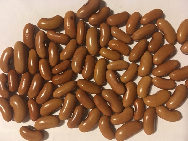 Hülse flacher Querschnitt, einfarbig grün. Korn einfarbig braun (beige und sand), länglich mit ovalem Querschnitt, Bauch gerade oder konkav, Rücken konvex. Mittelgroße Samen (100 St. wiegen 25-40 g)