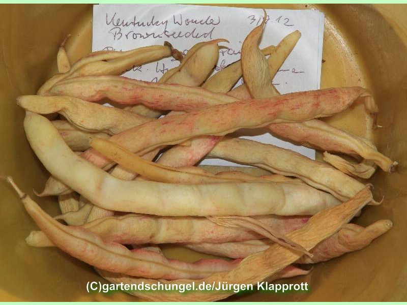 Andere Namen: American Sickle Pole, Eastern Wonder, Egg Harbor, Georgia Monstrous Pole, Improved Southern Prolific, Missouri Prolific, Old Homestead Pole and Texas Pole; Old Homestead, Kentucky Wonder Pole