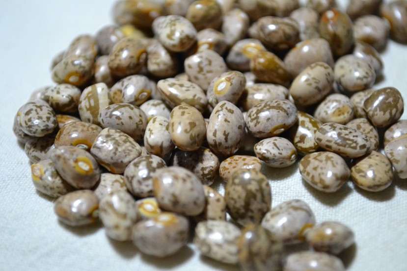 "Our only new greasy bean for this year, this bean has been grown for over a hundred years in Lee and Wolfe Counties in Kentucky by the extended family of Luster Palmer. The seed is tan with darker brown specks and is also a cut-short."
