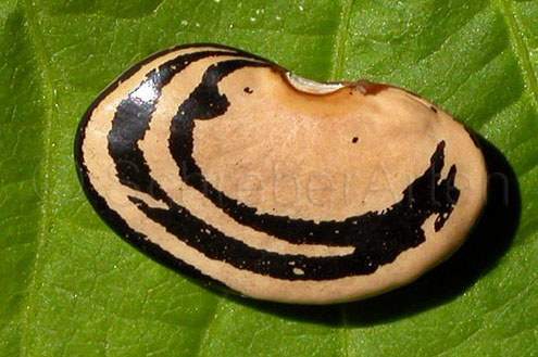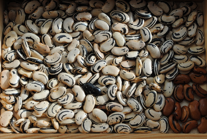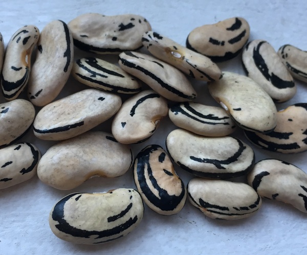 Die Bohne hat bei der Ernte eine fast weiße / creme Farbene Untergrundfarbe, die Bohne Dunkelt im laufe der Zeit und er Trocknungsphase nach, sie kann fast Schokobraun werden. Sehr ergiebige Bohnensorte.