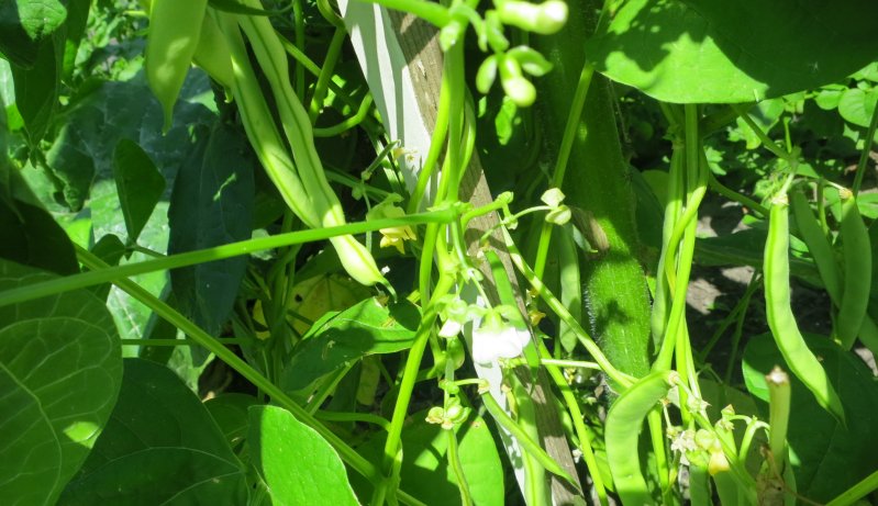 Die an diesem Tag oberen –noch grünen- Hülsen habe ich als Gemüse gekocht.