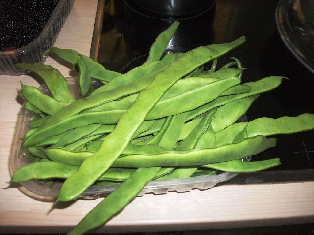 Flache, breite, lange und frühe grüne Bohnen. Die ersten Schnippelstangenbohnen des Jahres. Schwertbohne.