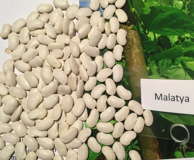 Pflanzenhöhe 200 cm, erster Blütenstand in 20 cm Höhe, erste Blpten 6 Wochen nach Aussaat. Weiße Blüten. Nutzung als Trockenbohne, Vollreife ab September (Anbaujahr 2018).