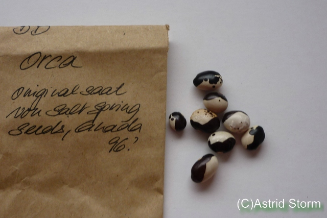 Es gibt mehrere schwarz-weisse Bohnen namens 'Orca'. Ich würde sagen die 'Orca (Double Helix Strain' auf die Seite von Russ Crow ist die originalen 'Orca'. Dieser ist auch zu finden auf die Seite von Purcell Mountain Farms. http://www.purcellmountainfarms.com/Orca%20Beans.htm